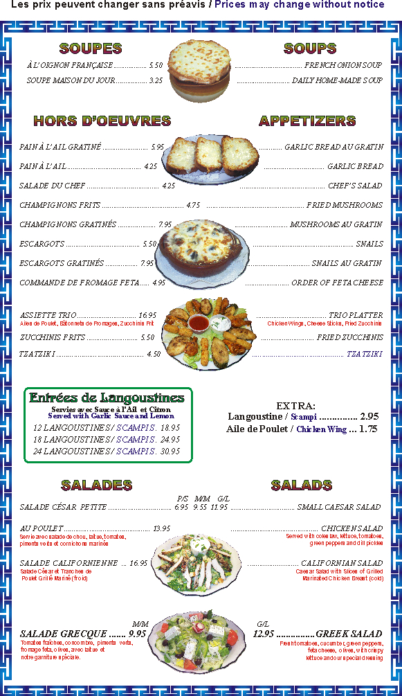 ![]() CUISINE Italienne, Grecque, Nord - Américaine