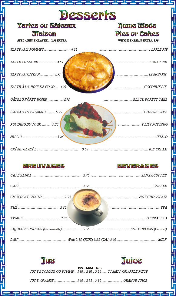 Commandes au Comptoir Disponible Réservations Acceptées Stationnement Disponible - Gratuit Méthodes de Paiement MC, Visa, Interac Directions ![]()